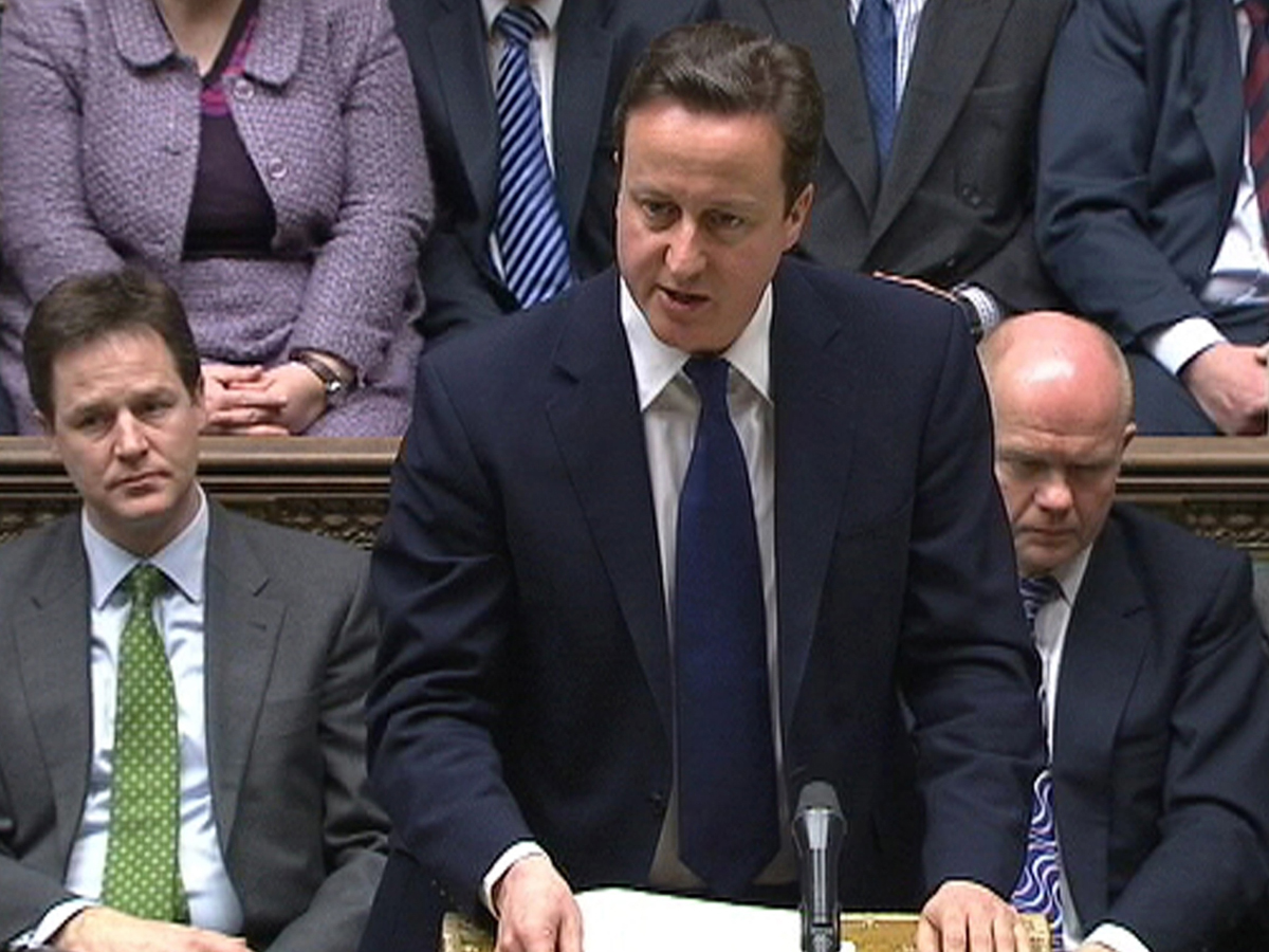 В интервью телеканалу Sky News Кэмерон подчеркнул, что международная коалиция не будет выходить за рамки, установленные резолюцией Совета Безопасности ООН о бесполетной зоне над Ливией и защите гражданского населения. По словам Кэмерона, "вторжение" в Ливию и ее "оккупация" недопустимы. При этом британский премьер выступил за оказание срочной помощи жителям города Мисурата, осажденного войсками Каддафи, и вновь призвал ливийского лидера отказаться от власти.