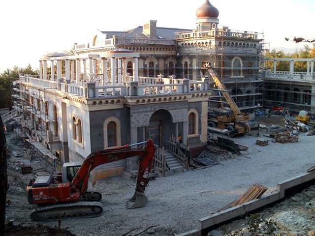 Как рассказал тогда краснодарский эколог Дмитрий Шевченко, не менее 10 га уникального леса, где растет охраняемая законом пицундская сосна, огорожено 3-метровым забором. Пробравшись внутрь, экологи обнаружили "странное, пафосное строение - не то особняк, не то храм - венчает это четырехугольное здание куполок с крестом. Совершенно какой-то невообразимый гибрид дворца и храма". Из храма-особняка вышел человек и "на ломаном русском" попросил экологов покинуть эту частную территорию.