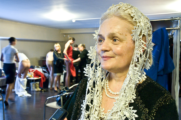 - У нас только по одной туфле! - со смехом пожаловались две девушки модельеру, а она в ответ сделала замечание, что они свалили туфли в кучу на полу и устроили «рынок», вместо того, чтобы выбирать обувь более аккуратно.