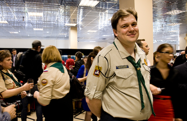 В толпе людей, рассматривавших патриотически-православные фотографии, я увидела несколько взрослых женщин и мужчин, одетых как бойскауты. Оказалось, что они из православной Организации Российских Юных Разведчиков, и это их парадная форма. Оказалось, что это движение возникло в 1909 году. Один из вожатых по имени Константин рассказал, что в детях они воспитывают лидерство и патриотизм. Отряды существуют при приходах, и в программу входит обязательный курс истории и практики православия. Я спросила, какую одежду они рекомендуют носить своим воспитанникам.