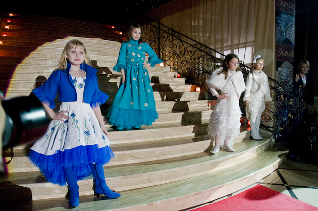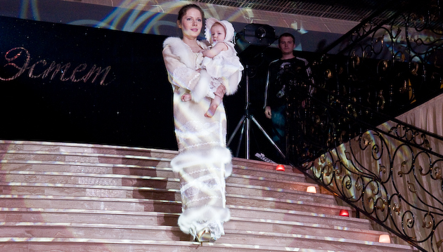 Наконец началось. Симпатичная девушка прочитала молитву «Отче наш», маленькие девочки, одетые дизайнером Натальей Гайдаржи в стиле ретро, прогулялись по подиуму и поднялись на сцену. Там уже стоял подпоясанный кушаком Петков: он стал петь, явно под фонограмму, хорал про Русь с припевом «Господи, помилуй», а девочки делали вид, что подпевают, хотя микрофона перед ними не поставили, даже для вида.