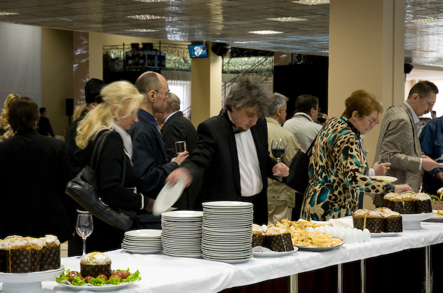 28 апреля в Ювелирном доме «Эстет» мы попытались выяснить, что такое православная мода. В просторном зале, напоминающем ангар, можно было увидеть показ православной моды, обсудить эту животрепещущую тему с многочисленными экспертами и послушать выступление протоиерея Всеволода Чаплина. Угощение в виде куличей и яиц помогало приблизиться к теме, а еще желающие могли приобрести подставку под яйцо с ложечкой из драгоценного на вид металла или побаловать себя кольцом-другим: часть украшений, выставленных в стеклянных боксах, можно было купить в тот же вечер.