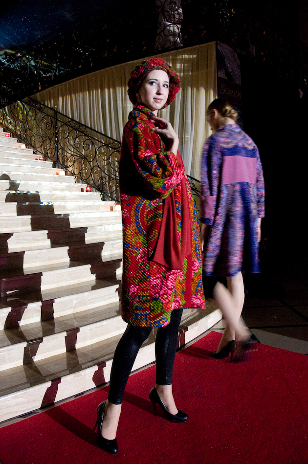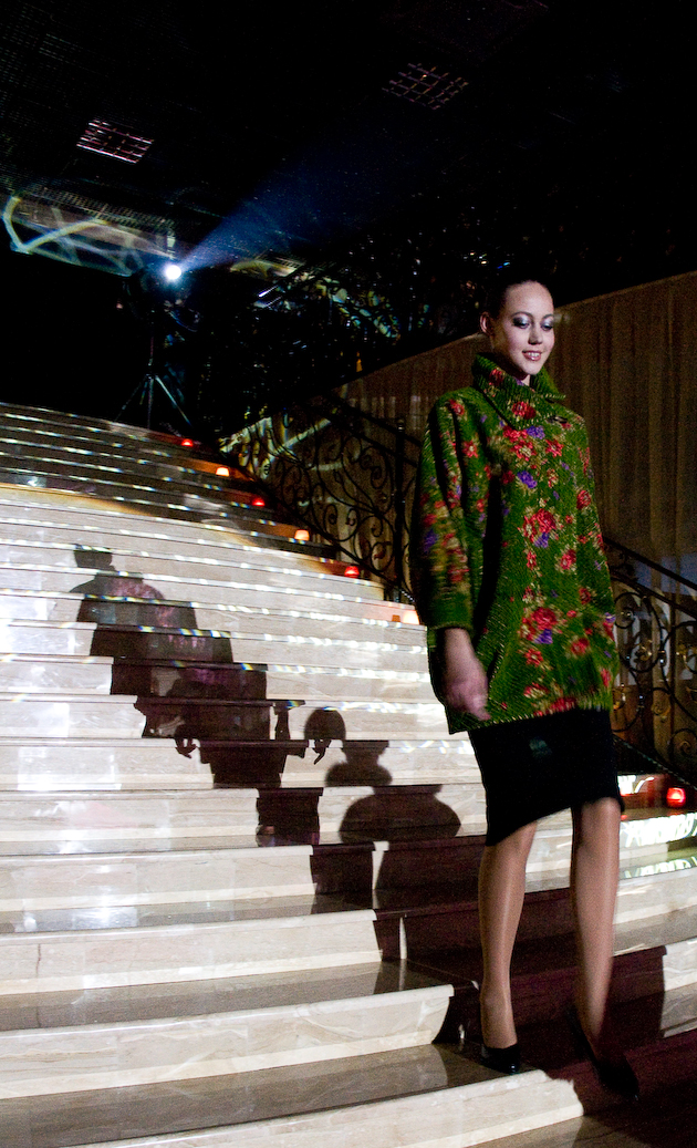 В качестве головных уборов были выбраны платки и кружевные шапочки. Последней показали прошлогоднюю коллекцию Вячеслава Зайцева «Валенки» из тканей с узорами в русском стиле - в ней присутствовала и мужская одежда. Мероприятие затянулось, и часть людей ушла раньше.