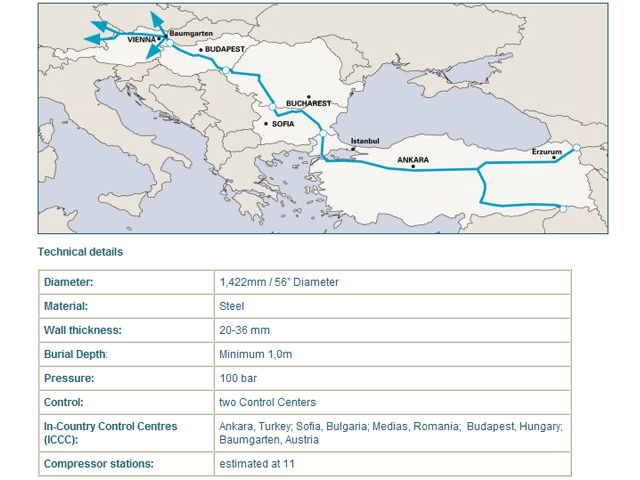 Управляющий проектом консорциум рассчитывает перекачивать газ из стран Каспийского региона европейским клиентам через Турцию и Балканы.