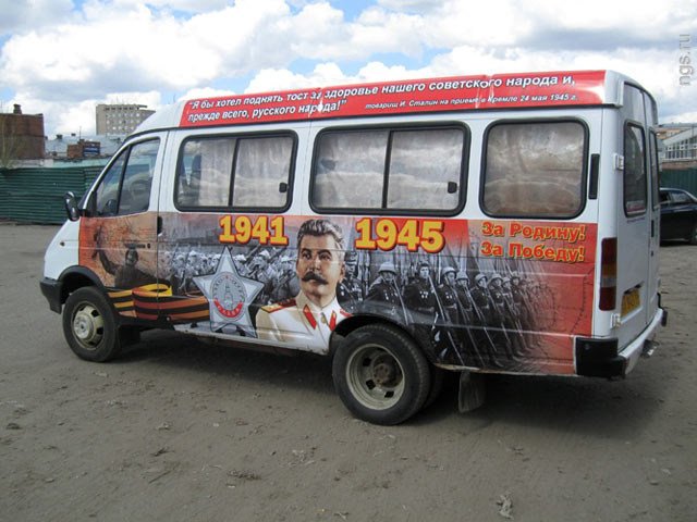 Напомним, что пустить маршрутки с портретами Сталина перед Днем Победы планировали и в Москве, однако акция сорвалась, потому что рекламное агентство отказалось от контракта. 300 тыс. рублей на рекламу вождя собрали блоггеры-сталинисты. Организаторы акции уверяли, что заключили договоры сроком на месяц с владельцем микроавтобусов - фирмой "Автолайн" и с рекламным агентством "Два мига". На трех автобусах Mercedes с двух сторон предполагалось разместить медаль "За победу над Германией в Великой Отечественной войне 1941-1945 гг." с профилем Сталина.