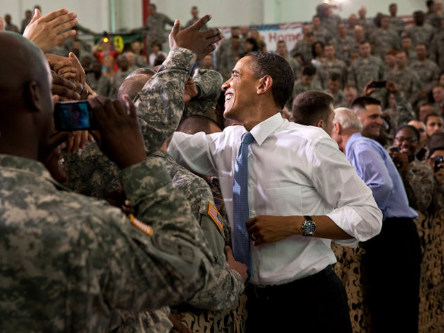 Обама, к которому в поездке присоединился и вице-президент США Джозеф Байден, также поблагодарил солдат, вернувшихся из Афганистана, за их службу.