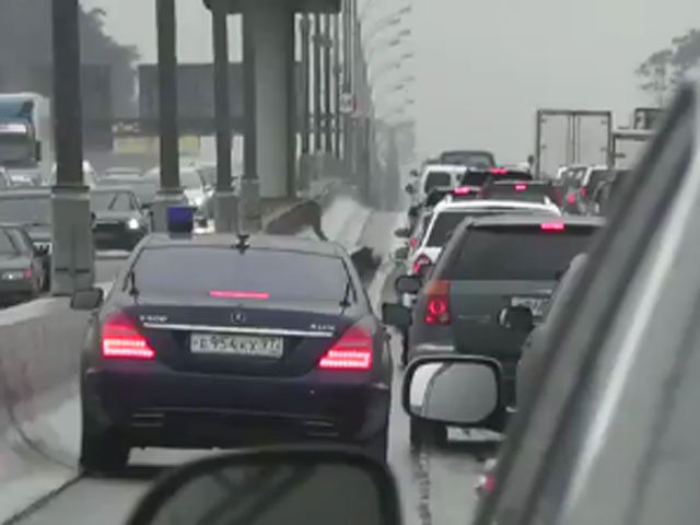 МЧС России признало, что Mercedes со спецсигналом на МКАД, из которого угрожали "выстрелить в голову" водителю, не уступившему полосу, принадлежит главе министерства Сергею Шойгу, но самого министра в момент инцидента в машине не было. "Тебе, что выстрелить в голову, придурок", - прокричал водитель хозяину машины, которая мешала ему проехать.