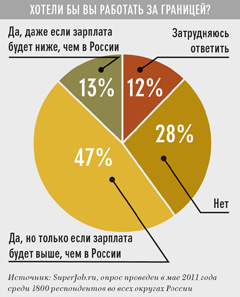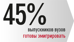 Владислав Иноземцев, директор Центра исследований постиндустриального общества, приводит следующие данные: опросы в вузах показывают, что 45 % выпускников не исключают возможности уехать, а почти половина из них твердо намерены добиваться отъезда. «Детишек отправило за границу около трети представителей крупного и среднего бизнеса, — говорит Антон Данилов-Данильян, председатель Экспертного совета «Деловой России». — Для начала их вывозят как бы поучиться, а уж вернутся-не вернутся, зависит от того, как здесь будет развиваться ситуация».