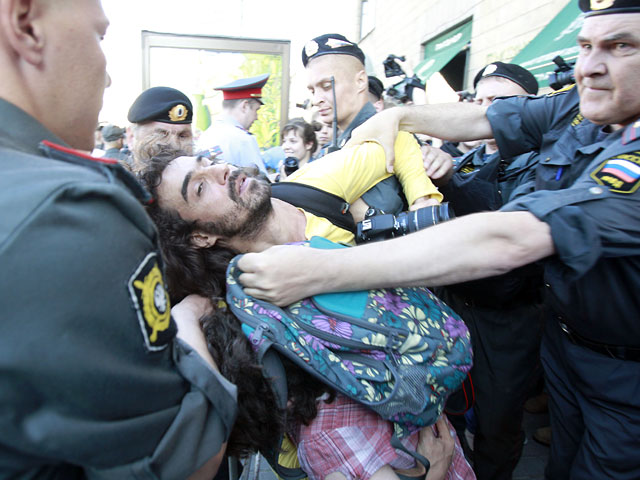 В отношении других задержанных полицейские действовали более жестко. Оппозиционера Сергея Удальцова, по его собственным словам, полицейские сильно ударили в висок. Как пишет в Twitter активистка "Солидарности" Анастасия Рыбаченко, при задержании ее волокли по земле. "Ссадины на локте, на губе", - пишет она. "Задержали по ориентировке. Показали на меня, сказали: "Задерживайте". Хотят обыскивать. Раз задержали по наводке - не исключаю, что дадут сутки", - добавляет Рабаченко.