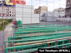 За забором хранятся огорождения, которые полиция использует при разгонах акций "Стратегии-31".