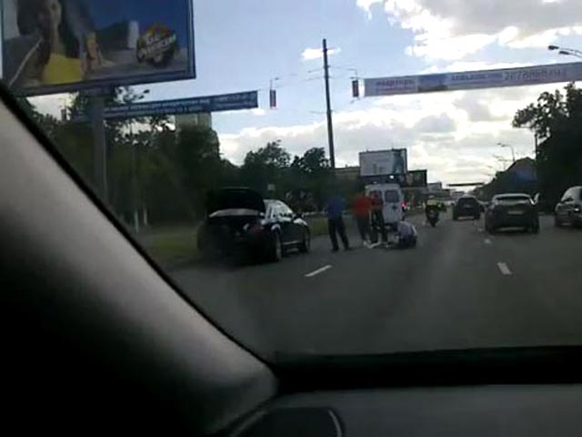 На сайте ОСВ размещены фото- и видеоматериалы, на которых видно, как врачи скорой помощи пытаются оказать помощь лежащему на проезжей части мужчине и готовят его к эвакуации. У левого края дороги стоит черный Mercedes представительского класса с характерной вмятиной на лобовом стекле.