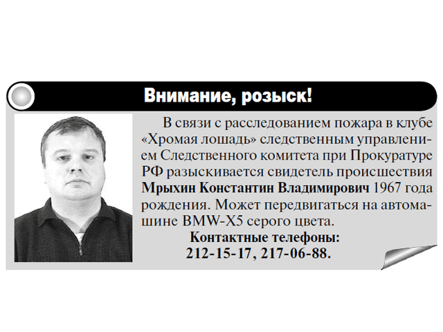 25-летняя жена Мрыхина Александра также пострадала при пожаре в "Хромой лошади" и была госпитализирована в НИИ имени Склифосовского. По словам очевидцев, сам Мрыхин тоже находился в клубе в ночь трагедии.