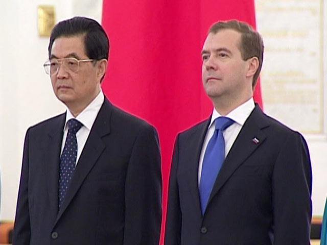Президент России Дмитрий Медведев и председатель КНР Ху Цзиньтао обсудили 16 июня в Кремле экономическое сотрудничество и международные проблемы, сообщает "Интерфакс". Ху Цзиньтао находится в России с государственным визитом, а накануне главы России и Китая участвовали в саммите ШОС в Астане.