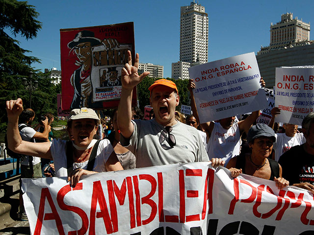 Массовые протесты, в которых участвует преимущественно молодежь (безработица среди испанцев 16 - 29 лет составляет почти 35%), проходят по всей Испании с 15 мая. Тысячи людей разбивают палаточные лагеря на центральных площадях испанских городов. Они выдвигают три основных требования: создание рабочих мест, решение жилищной проблемы и реформа избирательного законодательства.