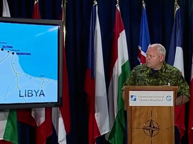 По его словам, режим Каддафи находится во все большей изоляции в стране, и население благодарно НАТО за подрыв военного потенциала режима. Видео с брифинга Бушара размещено на официальном теле-интернет сайте альянса NATO TV.