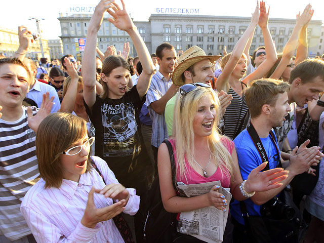 Всего на прилегающей к площади территории находятся около 300 человек, в основном это студенты минских вузов, которых по решению администрации учебных заведений "пригласили на дискотеку", а также курсанты, работники госпредприятий, привлеченные на мероприятие по разнарядке.