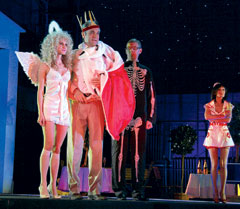 | Сцена маскарада. На переднем плане Геро — Анна Бегунова, ее отец Леонато — Андрей Заводюк, Антонио — Константин Похмелов |