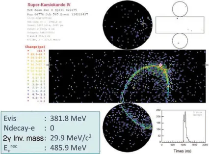 Дальний детектор СуперКамиоканде представляет собой гигантский бак диаметром 39 м и высотой 42 м, заполненный чистой водой. По стенкам, дну и крыше детектора с шагом 70 см расположено около 11000 больших фотоэлектронных умножителей, которые регистрируют черенковское излучение от заряженных частиц, появляющихся в результате взаимодействия нейтрино с веществом детектора. Детектор регистрирует нейтрино в диапазоне от энергий 4,5 МэВ до 1 ТэВ. Размер, направление и форма черенковского конуса используются для идентификации события: одно-кольцевое мюоноподобное, однокольцевое электроноподобное или многокольцевое событие. Мюонопо-добное кольцо от черенковского излучения мюона имеет форму с резкими краями, а кольцо от электрона имеет размытую форму. Временная синхронизация с протонным пучком осуществляется через навигационную систему GPS с точностью около 50 наносекунд. Такая точность позволяет наблюдать временную структуру зарегистрированных нейтринных событий и ее соответствие временной структуре протонного пучка, что позволяет подавить фон от атмосферных нейтрино до пренебрежимо малого уровня. Нейтринные события регистрировались в интервале ±500 мксек по отношении к ожидаемому времени появления нейтрино от J-PARC.