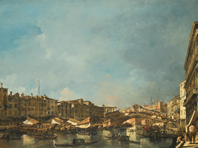 Топ-лотом аукциона Sotheby's в Лондоне стала картина кисти венецианского художника XVIII столетия Франческо Гварди "Вид на мост Риальто", которая была продана за 26,7 миллиона фунтов стерлингов (42,9 миллиона долларов).