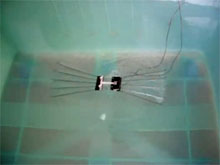 В Китае создали биомиметического (имитирующего поведение насекомых) микроробота, который способен "ходить" по воде и не тонуть, сообщают Вести.Ru. Робот длиной около 15 сантиметров имеет десять водоотталкивающих опорных "лап" и еще две - подвижных, которые работают, как весла, и приводятся в движение мини-двигателями.