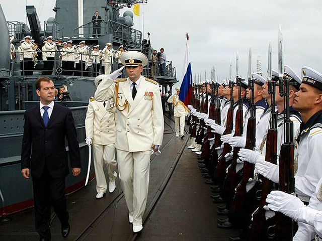 В итоге на праздновании Дня ВМФ в Севастополе Россию представлял глава кремлевской администрации Сергей Нарышкин. А Медведев в это время в Балтийске принимал парад военных кораблей, наблюдал за высадкой морского десанта с десантного корабля "Калининград" и показательными стрельбами ракетных крейсеров. Закрыл парад самый быстрый на Балтийском флоте десантный корабль на воздушной подушке "Настойчивый".