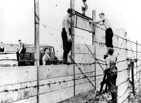 Строительство под дулами автоматов (снимок 1961 года)**Защитный вал диктатуры. 50 лет назад, 13 августа 1961 года, появилась Берлинская стена, разделившая на три десятилетия две системы, два лагеря, Запад и Восток, немцев и немцев. Как строили Стену — вспоминал The New Times«Дворец слез» — даже в конце 1980-х советским туристам это название ничего не говорило. Зато многое говорило восточным немцам. Здесь расставались и плакали…