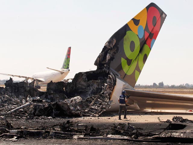Войска, остающиеся верными ливийскому лидеру Муаммару Каддафи, обстреляли ракетами "Град" международный аэропорт Триполи, взятый под контроль мятежниками, и разбомбили пассажирский лайнер Airbus A-330. Никто при этом не пострадал, но самолет стоимостью около 200 миллионов долларов в результате превратился в груду обломков и пыли, передает сайт телеканала Al Arabiya.