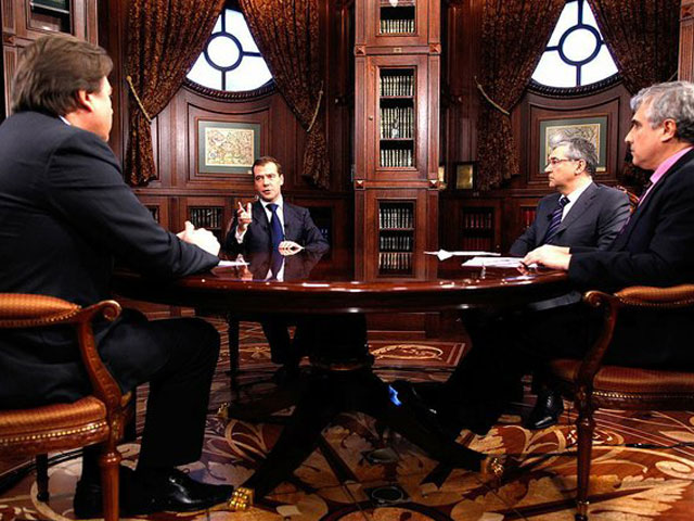 Президент Дмитрий Медведев решил внезапно объяснить населению через федеральные телеканалы свою точку зрения на последние крупные политические события в стране, а именно рокировку в тандеме, отставку министра финансов Алексея Кудрина и провал олигарха Михаила Прохорова в качестве лидера "Правого дела". Полный текст интервью, которое выйдет в эфир Первого, "России" и НТВ только в пятницу вечером, уже появился на сайте Кремля.