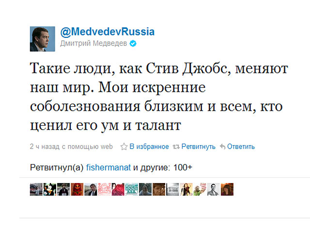 Поклонник Apple Медведев откликнулся на смерть Стива Джобса в Twitter'e