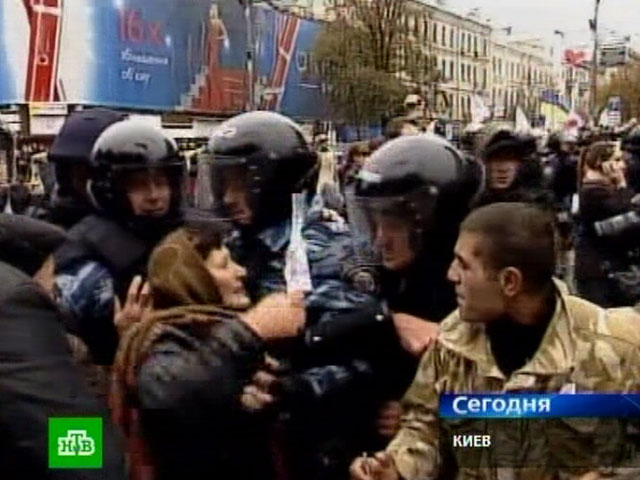 Бойцы спецподразделения "Беркут" преградили путь колонне, произошло несколько незначительных стычек сторонников Тимошенко с милицией. Митингующие остановились недалеко от входа в суд и скандируют: "Милиция - с народом", "Тимошенко - волю". В итоге бойцы "Беркута" оттеснили демонстрантов с проезжей части усилиям милиции и восстановили движение по Крещатику.