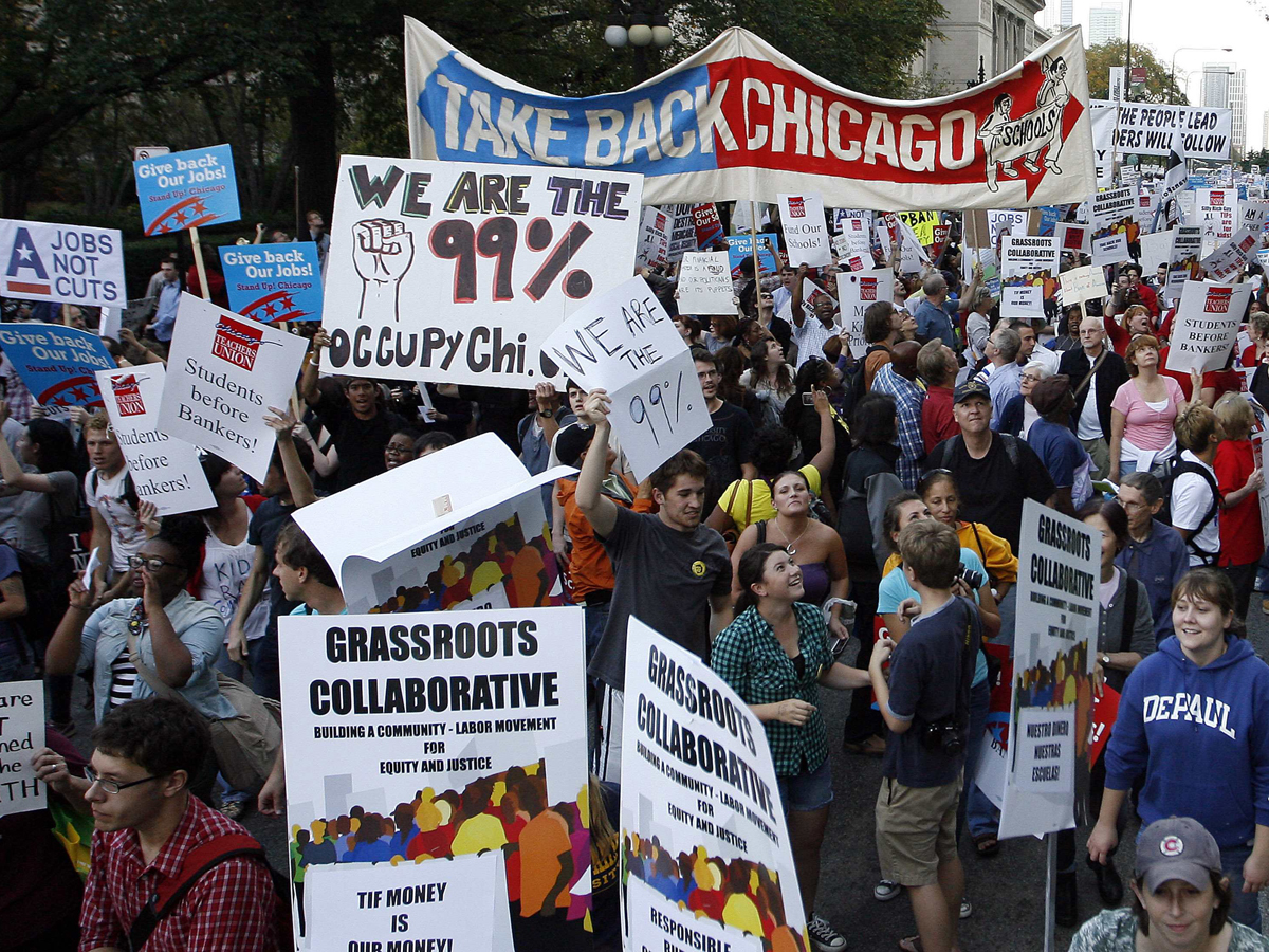 Протесты под лозунгом "Займи Уолл-Стрит" начались в Нью-Йорке около месяца назад и распространились на ряд других городов США. Участники акций протестуют против политики крупных корпораций и банков, на которые они возлагают ответственность за экономический кризис.