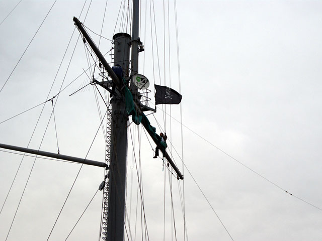 Напомним, в минувшее воскресенье несколько молодых людей под видом туристов поднялись на борт корабля-музея "Аврора" в Петербурге, где, разделившись на две группы, попытались взобраться на мачты. Первая группа была задержана матросами, у хулиганов изъяли обрезки арматуры и пиротехнические изделия. Другие активисты сумели забраться на мачту, где развернули "веселого Роджера" - пиратский черный флаг с черепом и костями. Чтобы снять хулиганов, которые отказывались спускаться, потребовалось несколько часов.