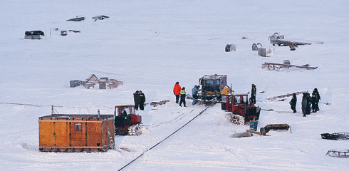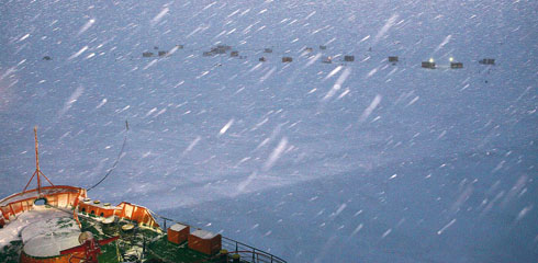 Научное оборудование, тонны провизии и топлива с расчетом минимум на год-полтора для десятка людей, домики-«балки», тракторы, электростанции — все это нужно разгрузить и расставить по льдине и не слишком близко друг от друга, для распределения нагрузки на лед, и не слишком далеко, чтобы каждое перемещение между балками, кают-компанией с камбузом и станциями наблюдения не превращалось в долгое путешествие на снегоходах.