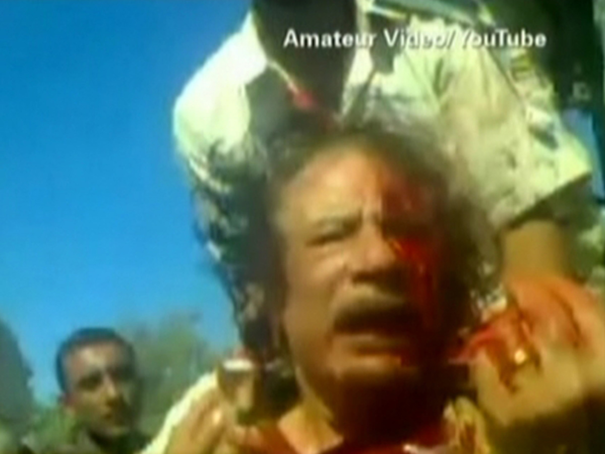 Каддафи и его сын Мутассем в четверг были схвачены силами НПС живыми, но, по некоторым данным, их сразу убили.
