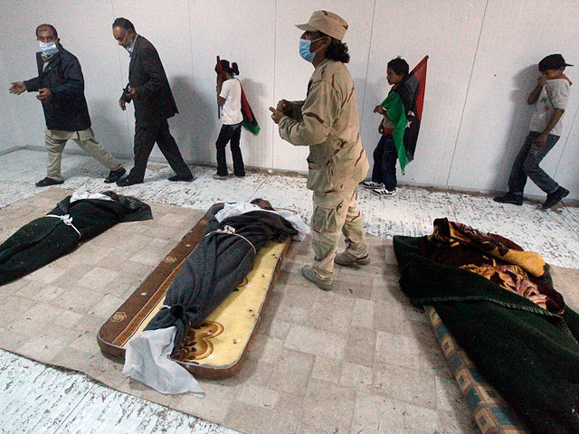 Ранее чиновники ПНС заявляли, что начавшее разлагаться тело свергнутого и убитого в минувший четверг ливийского лидера будет захоронено в секретной могиле в пустыне. Последние дни по распоряжению новых властей труп Каддафи был выставлен для публичного созерцания в морозильной камере в районе старого рынка Сук ат-Тавасна в городе Мисурата, расположенном в 200 км восточнее Триполи, а в это время представители оппозиции спорили, что делать с телом бывшего главы Джамахирии.