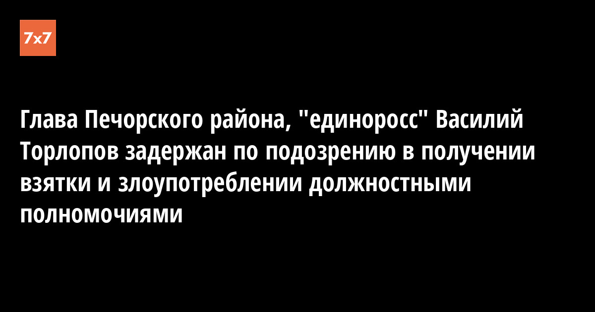 Пресс-служба Следственного управления Следственного комитета (СУСК) РФ по РК сообщила сегодня о возбуждении двух уголовных дел в отношении главы-руководителя администрации МО МР «Печора», «единоросса» Василия Торлопова, который подозревается в получении взятки (ч. 4 ст. 290 УК РФ) и в злоупотреблении должностными полномочиями (ч. 2 ст. 285 УК РФ).