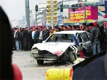 В Китае разгневанная толпа чуть не линчевала пьяного полицейского, который совершил ДТП, убив пятерых прохожих на автобусной остановке. Как сообщает АР, толпа принялась крушить полицейские автомобили, когда коллеги пьяного убийцы попытались унести тела с места ДТП без оформления, то есть захотели скрыть происшествие.
