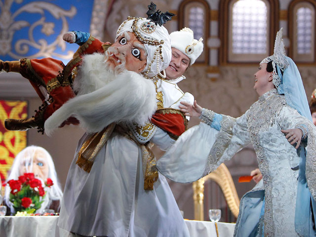 Первая и последняя сцены решены в пышном традиционном стиле, прочие обращены в сегодняшний день: царство Черномора напоминало психиатрическую клинику, а во дворце царства волшебницы Наины девушки в современных костюмах жонглировали, танцевали и катались на роликах, исполняя вокальные партии, сообщает РИА "Новости".