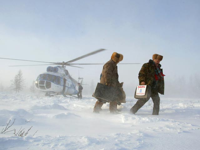 Как рассказал накануне в ходе видеоконференции в ЦИК РФ председатель избирательной комиссии Красноярского края Константин Бочаров, общая стоимость такого голосования в субъекте составляет более 52 млн рублей, что более чем в два раза выше, чем на думских выборах 2007 года. Подавляющая часть этой суммы уходит на оплату авиаперелетов. Бочаров посетовал на "старые, жуткие, холодные вертолеты". "При этом в полетах члены избирательных комиссий порой находятся по 18 часов в сутки", - сообщил он.