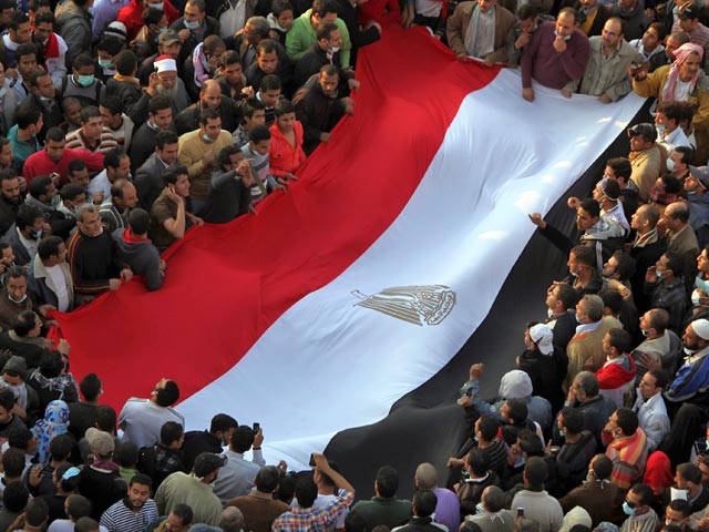 Демонстранты размахивают египетскими флагами, выкрикивают лозунги с призывом к военным вернуться в казармы, с требованиями формирования правительства национального спасения. Люди продолжают подходить.