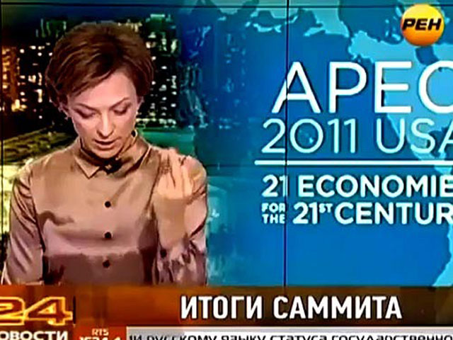 Лауреат престижной премии "ТЭФИ" Татьяна Лиманова представляла сюжет об участии российского лидера Дмитрия Медведева на саммите стран Азиатско-Тихоокеанского экономического сотрудничества (АТЭС) на Гавайях. Комментируя эту новость, телеведущая отметила, что "Дмитрий Медведев стал сегодня председателем организации азиатско-тихоокеанского экономического сотрудничества", добавив, что "ранее этот пост занимал американский президент Барак Обама".