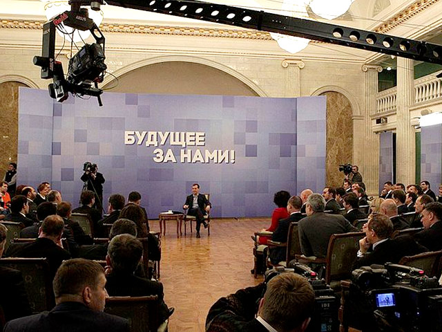 Очевидно, таким образом президент откликнулся на утренние газеты. В частности, "Ведомости" обратили внимание, что на съезде "Единой России", который накануне выдвинул в президенты Владимира Путина, все идеи четырехлетнего правления Медведева фактически ушли в утиль. Там не прозвучало ни слова из президентского манифеста "Россия, вперед!" - об отказе от сырьевой модели экономики и патерналистской идеологии в пользу основанной на инновациях "умной экономики".