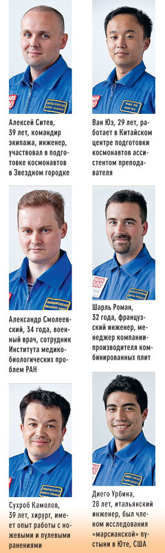 «Российская часть — бывшие военные, так что для нас следование правилам не составило труда», — говорит Смолеевский. Он раньше работал в Военном институте медицины, Ситев окончил Высшее военно-морское инженерное училище им. Дзержинского, а хирург Сухроб Камолов окончил Военно-медицинскую академию им. Кирова и работал врачом на границе Таджикистана с Афганистаном. Ван Юэ — из Пекина, работает в Китайском центре подготовки космонавтов, занимается проблемами адаптации. С собой в эксперимент Ван Юэ взял агрегат («Пульс-Язык») для экспериментов в области традиционной китайской медицины. Европейцы тоже привезли массу всяких приборов: их интересовали проблемы сна, «эмоциональная и когнитивная адаптация одиночества», изменения психики человека в замкнутом пространстве.