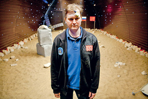 В понедельник, 5 декабря, участники полуторагодового эксперимента «Марс-500» смогли наконец покинуть территорию исследовательского центра и отправиться домой. Понять, что дало науке их заточение, ученым еще только предстоит, но узнать, каково им было, можно уже сегодня Ноги утопают в песке. Вокруг темно и тихо, только сверкают похожие на новогоднюю гирлянду лампочки над головой. Поверхность усеяна неровными камнями, из земли торчат 3 флага завоевателей — российский, Европейского космического агентства и КНДР, а над ними возвышаются 2 крупных сложенных друг на друга бетонных кирпича. Во время высадки с этой марсианской скалы дрелью и молотком снимали образцы внеземного грунта. «Знаете, у нас многие спрашивают: а когда вы были там, на имитаторе, вы не чувствовали себя глупо, сидя в этой песочнице? — рассказывает один из участников эксперимента «Марс-500», военный врач Александр Смолеевский. — Нет. Мы видели Марс через маленькое окошко скафандра, а в нем небольшой уровень обзора, и нам постоянно приходилось смотреть под ноги, чтобы не споткнуться о кислородный шланг, и на руки, когда мы работали. Мы не видели границ тренажера. Для нас Марс выглядел настоящим». Команда из 6 добровольцев провела 1,5 года в изоляции от окружающего мира в тесном модуле на Хорошевском шоссе, имитируя пилотируемый полет на Красную планету. До настоящего Марса отсюда — минимум 6,5 месяца полета.
