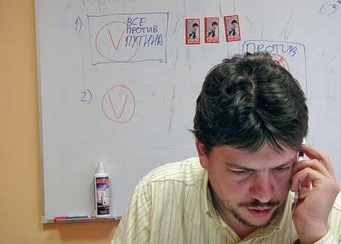 Кампанию против «партии жуликов и воров» Леонид Волков вел вплоть до 4 декабря, несмотря на то что Верховный суд снял его с выборов в Заксобрание областиВ него поверили В 2005 году в 18 лет молодой бизнесмен, работающий в строительной сфере, Ярослав Ширшиков вступил в «Единую Россию». «Хотел с мудрым Путиным строить гражданское общество и мощное государство», — вспоминает теперь Ярослав. Тогда в планы молодого человека вмешалась армия, а когда он демобилизовался, то первые месяцы работал охранником и, по его словам, понаблюдав за беспределом «Единой России» в ходе предвыборной кампании 2007 года, в ночь со 2 на 3 декабря, когда по стране считали голоса, порвал и сжег свой партбилет, после чего написал заявление о выходе из партии. «Наш губернатор, это я вам как строитель говорю, вороват, о чем всем известно примерно с 1998 года, — сказал Ширшиков The New Times. — Экспоцентру, который он построил в городе за 8 млрд рублей, красная цена — 2,5 млрд». Недавно Ширшиков случайно наткнулся в интернете на ссылку на блог Волкова, сначала просто читал, а когда кандидату удалось восстановиться через областной суд — пришел в штаб помогать. «Каждый день после работы мы с 6 и до 10–11 вечера стояли в пикетах, раздавали газеты, — рассказывает Ширшиков. — Конечно, бизнесу это не помогает, устаешь и так далее, но ведь кучка узурпаторов ущемляет мое избирательное право. Это вам в Москве кажется, что все под контролем и страна молчит, а мы на Урале не боимся вашего Путина, и нам дюже не нравится, когда кто-то гайки начинает закручивать». 4 декабря Ширшиков проголосовал по методу Алексея Навального: за коммунистов — в Госдуму и за «Справедливую Россию» — в областное Заксобрание.