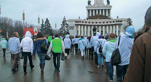 А в это время другой корреспондент журнала Егор Мостовщиков «косил» под «наших» — 3 тыс. комиссаров из Углича, Ярославля, Мурома, Махачкалы и Грозного были свезены в столицу для участия в «каруселях». 5 декабря ждут еще 4 тыс. комиссаров, 6 декабря — еще 8 тыс. Спрашивается, зачем? «Мы приехали поддержать Медведева, оказать ему поддержку», — рассказала девушка Марина, с которой корреспондент The New Times прошел в колонне от Большого театра до штаба «Наших» в пустующем павильоне № 57 на ВДНХ. Активисты выдали спальные мешки и разноцветные непромокаемые куртки. Очевидно, продолжение следует. Но об этом — уже в следующем номере The New Times.