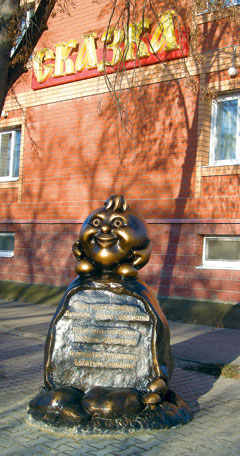 Круглый и в кепке Здесь поставлен памятник сказочному Колобку — после того как некие ученые доказали, что Колобок был скатан именно в здешних местах. На мой вкус, слишком глумливо, если вспомнить, в честь какого деятеля милейший Симбирск был переименован. Хотя, конечно, внешнее сходство самого знаменитого уроженца Симбирска с Колобком налицо — однако присобачить Колоб-