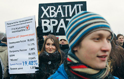 Уже темнело, когда ведущий митинга, сопредседатель Партии народной свободы Владимир Рыжков зачитал резолюцию митинга. В Москве шел мокрый снег, но казалось, что людям не хочется расходиться. Вежливость, улыбка, полное отсутствие агрессии — стали знаками митинга, в котором приняли участие десятки тысяч либералов и коммунистов, националистов и антифашистов, людей самых разных политических течений и тех, кто никогда не интересовался политикой. «Бороться за свои права — это легко и приятно, — написал из камеры № 5 спецприемника № 1 политик Алексей Навальный (текст был зачитан на митинге). — Единственное, но самое мощное оружие, необходимое нам, уже есть у каждого — это чувство собственного достоинства».