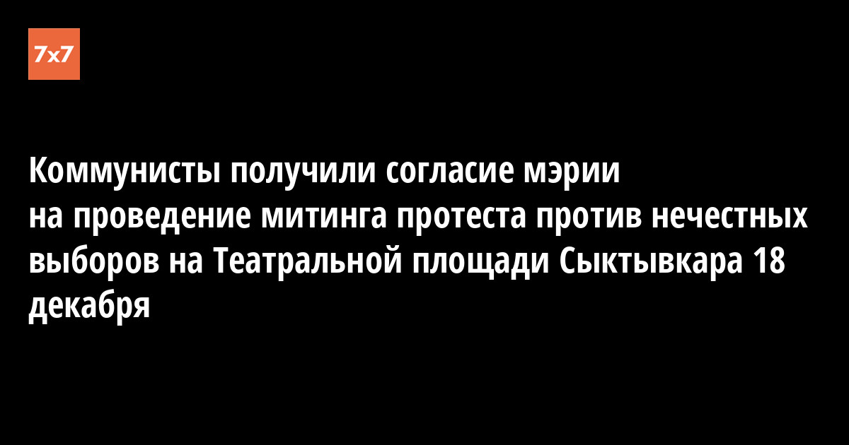 Сегодня Коми реском КПРФ получил-таки согласование со стороны администрации Сыктывкара на проведение своего митинга против нечестных выборов в воскресенье, 18 декабря, на Театральной площади столицы республики.