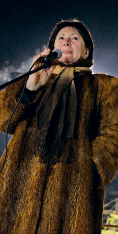 | Алла Джиоева выступает на митинге в холодном Цхинвале |